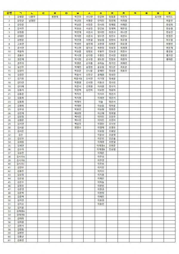 10월 7일(화) 추석 연휴 자습 신청 명단