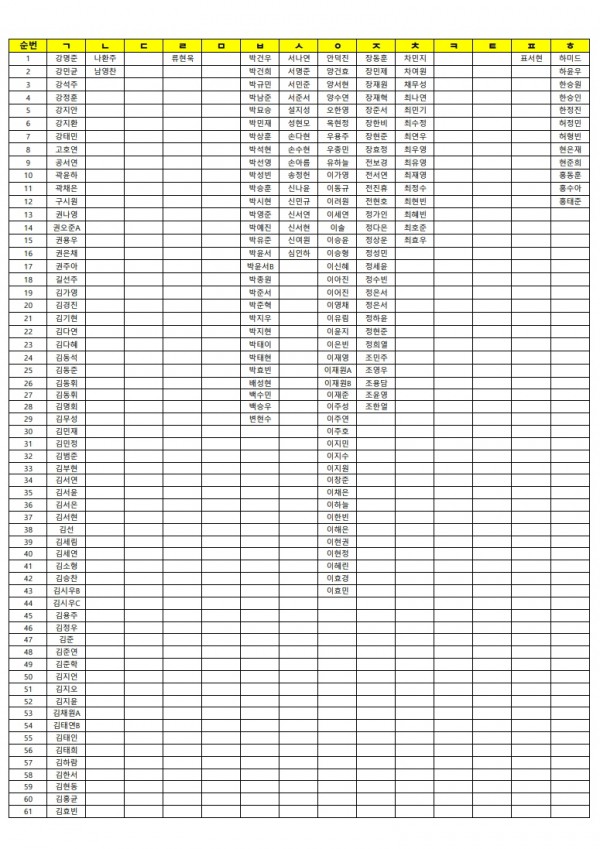 10월 26일(일) 휴일 자습 명단