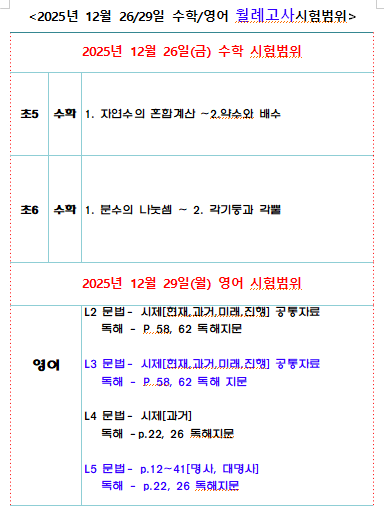 12월 월례고사 시험범위