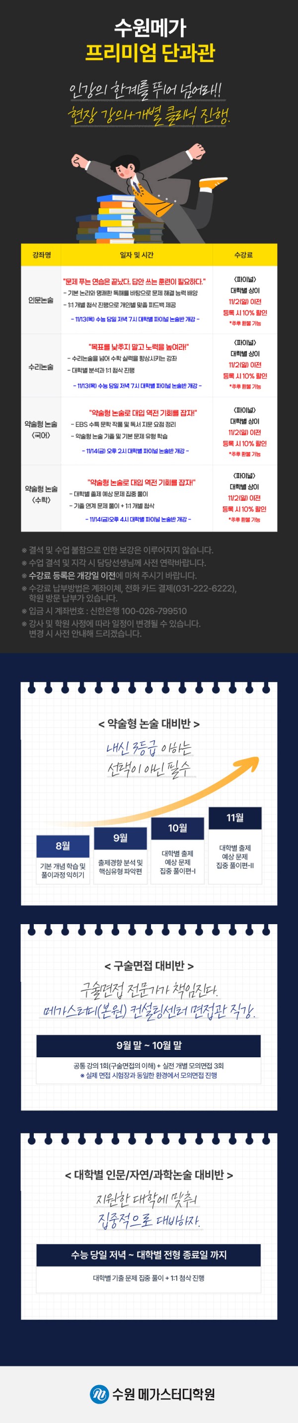 2025 파이널 대학별 논술 프로그램(인문/수리/약술형 논술) 페이지 정보 작성자 최고관리자 작성일 22-11-26 11:12 조회 4,465회 댓글 0건 본문 2025 파이널 대학별 논술 프로그램(인문/수리/약술형 논술)
