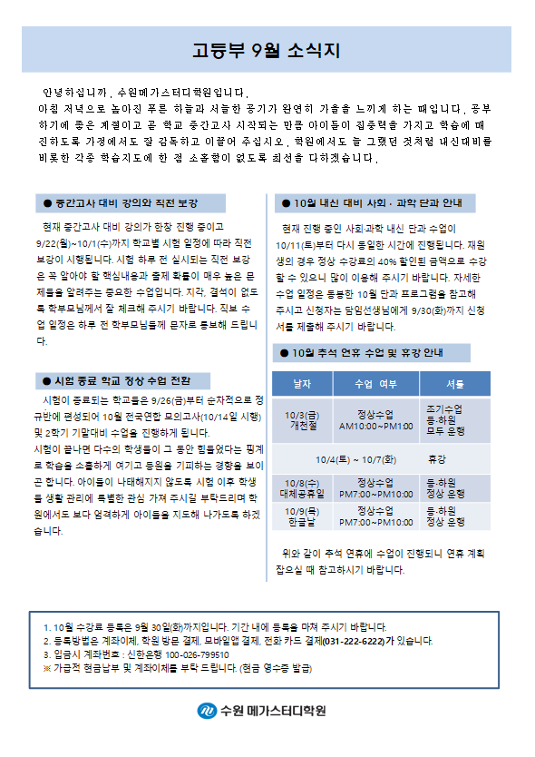 고등 [고등] 9월 가정통신문