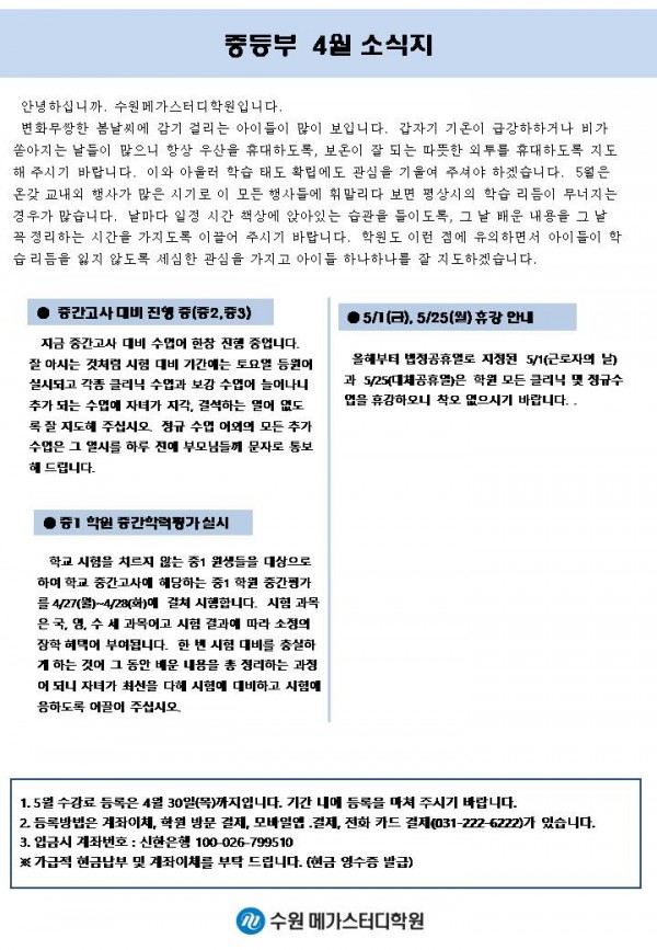 중등 [중등] 4월 가정통신문