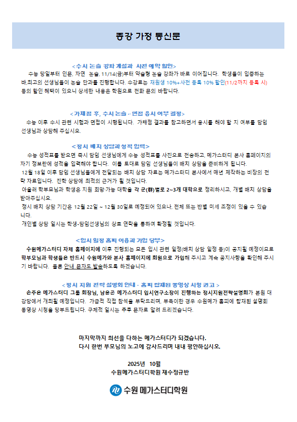 Copyright © 2001-2013 수원메가스터디. All Rights Reserved.