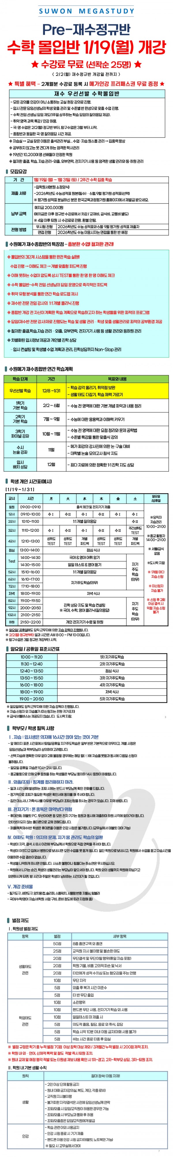 재수 2027 Pre-재수정규반 <수학 몰입반> 개강 페이지 정보 작성자 최고관리자 작성일 26-01-08 10:56 조회 818회 댓글 0건 본문 2027 Pre-재수정규반 <수학 몰입반> 개강